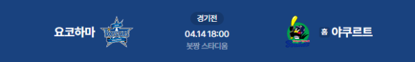 2026년 4월 14일(화) 18:00 (KST) 일본프로야구(NPB): 요코하마 DeNA 베이스타즈 vs 도쿄 야쿠르트 스왈로즈