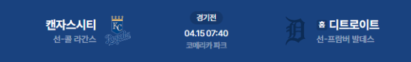 2026년 4월 15일(수) 07:40 (KST) 메이저리그(MLB): 캔자스시티 로열스 vs 디트로이트 타이거즈