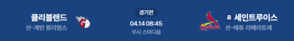 2026년 4월 15일(수) 08:45 (KST) 메이저리그(MLB): 클리블랜드 가디언스 vs 세인트루이스 카디널스