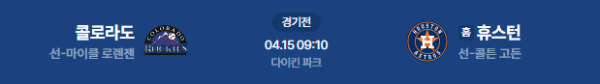 2026년 4월 15일(수) 09:10 (KST) 메이저리그(MLB): 콜로라도 로키스 vs 휴스턴 애스트로스