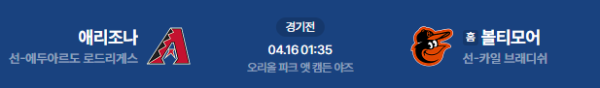 2026년 4월 16일(목) 오전 01:35(KST)메이저리그: 애리조나 vs 볼티모어