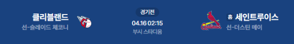 2026년 4월 16일(목) 오전 02:15(KST)메이저리그: 클리블랜드 vs 세인트루이스