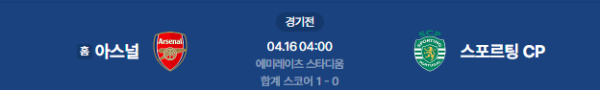 2026년 4월 16일(목) 오전 04:00(KST) 챔피언스리그: 아스널 vs 스포르팅 CP