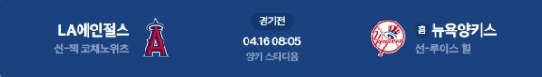 2026년 4월 16일(목) 오전 08:05(KST) 메이저리그: LA 에인절스 vs 뉴욕 양키스