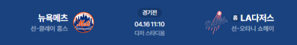 2026년 4월 16일(목) 오전 11:10(KST) 메이저리그: 뉴욕 메츠 vs LA 다저스