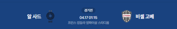2026년 4월 17일(금) 오전 01:15(KST) AFC 챔피언스리그 엘리트: 알 사드 vs 비셀 고베