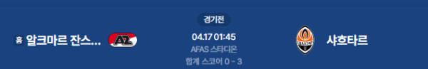 2026년 4월 17일(금) 오전 01:45(KST) 유로파 컨퍼런스리그: 알크마르 vs 샤흐타르