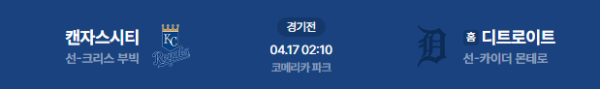 2026년 4월 17일(금) 오전 02:10(KST) 메이저리그: 캔자스시티 로열스 vs 디트로이트 타이거스