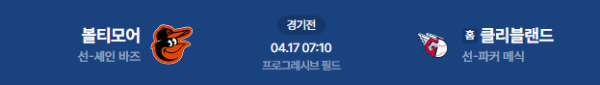 2026년 4월 17일(금) 오전 07:10(KST) 메이저리그: 볼티모어 오리올스 vs 클리블랜드 가디언스