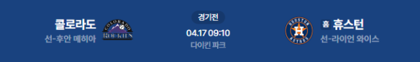 2026년 4월 17일(금) 오전 09:10(KST) 메이저리그: 콜로라도 로키스 vs 휴스턴 애스트로스