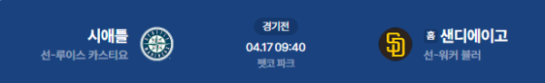 2026년 4월 17일(금) 오전 09:40(KST) 메이저리그: 시애틀 매리너스 vs 샌디에이고 파드리스