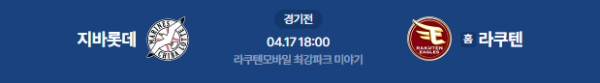 2026년 4월 17일(금) 오후 18:00(KST) 일본프로야구: 도호쿠 라쿠텐 골든이글스 vs 지바 롯데 마린스