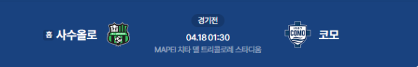 2026년 4월 18일(토) 오전 01:30(KST) 이탈리아 세리에 A: 사수올로 vs 코모