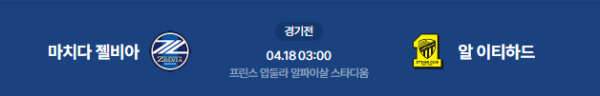 2026년 4월 18일(토) 오전 03:00(KST) AFC 챔피언스리그 엘리트 8강 1차전: 마치다 젤비아 vs 알 이티하드