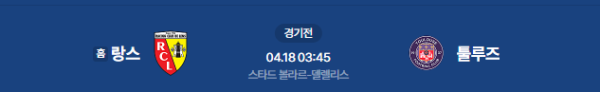 2026년 4월 18일(토) 오전 03:45(KST) 프랑스 리그 1 30라운드: RC 랑스 vs 툴루즈 FC