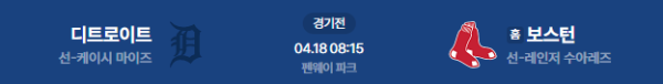 2026년 4월 18일(토) 오전 05:10(KST) 메이저리그: 디트로이트 타이거스 vs 보스턴 레드삭스