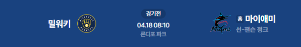2026년 4월 18일(토) 오전 08:10(KST) 메이저리그: 밀워키 브루어스 vs 마이애미 말린스