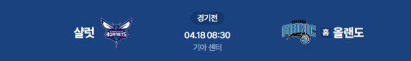 2026년 4월 18일(토) 오전 08:30(KST) NBA: 샬럿 호니츠 vs 올랜도 매직
