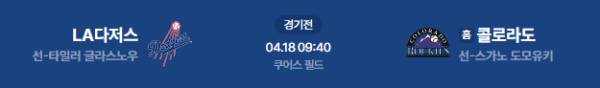 2026년 4월 18일(토) 오전 09:40(KST) 메이저리그: LA 다저스 vs 콜로라도 로키스