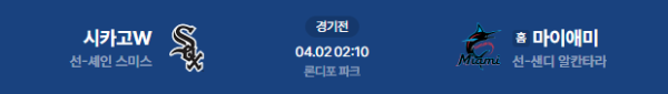 2026년 4월 2일(목) 02:10(KST) 미국 플로리다주 마이애미의 론디포 파크에서 열리는 시카고 화이트삭스 vs 마이애미 말린스의 MLB 경기 분석 리포트입니다.