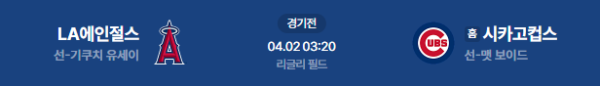 2026년 4월 2일(목) 03:20(KST) 미국 일리노이주 시카고의 리글리 필드에서 열리는 LA 에인절스 vs 시카고 컵스의 MLB 경기 분석 리포트입니다.