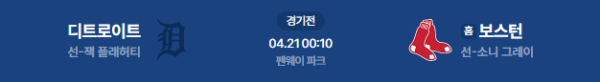 2026년 4월 21일(화) 오전 00:10(KST) 메이저리그: 디트로이트 타이거스 vs 보스턴 레드삭스