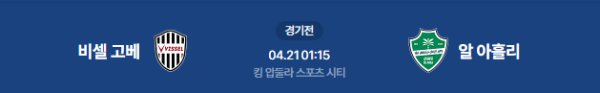 2026년 4월 21일(화) 오전 01:15(KST) AFC 챔피언스리그 엘리트(ACLE) 준결승전: 비셀 고베 vs 알 아흘리