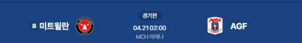 2026년 4월 21일(화) 오전 02:00(KST) 덴마크 수페르리가 챔피언십 라운드: FC 미트윌란 vs AGF 오르후스