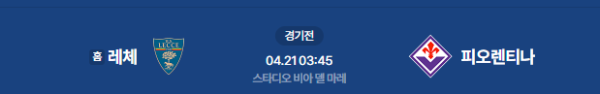 2026년 4월 21일(화) 오전 03:45(KST) 이탈리아 세리에 A: US 레체 vs ACF 피오렌티나