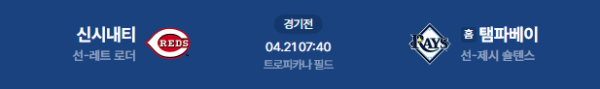 2026년 4월 21일(화) 오전 07:40(KST) 메이저리그: 신시내티 레즈 vs 탬파베이 레이스