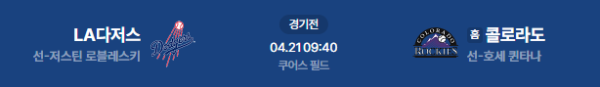 2026년 4월 21일(화) 오전 09:40(KST) 메이저리그: LA 다저스 vs 콜로라도 로키스