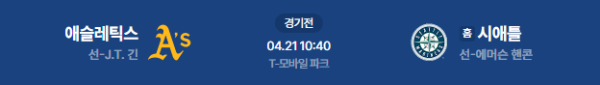 2026년 4월 21일(화) 오전 10:40(KST) 메이저리그: 오클랜드 애슬레틱스 vs 시애틀 매리너스