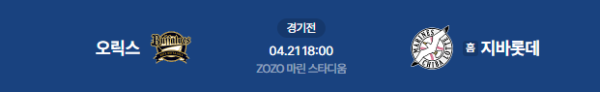 2026년 4월 21일(화) 18:00(KST) 일본프로야구(NPB) 정규시즌: 오릭스 버팔로즈 vs 지바 롯데 마린스