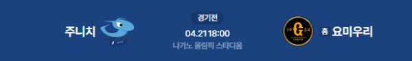 2026년 4월 21일(화) 18:00(KST) 일본프로야구(NPB) 정규시즌: 주니치 드래곤즈 vs 요미우리 자이언츠