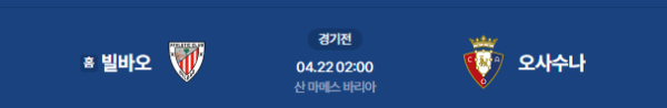 2026년 4월 22일(수) 오전 02:00(KST) 라리가(La Liga) 33라운드: 아틀레틱 빌바오 vs CA 오사수나