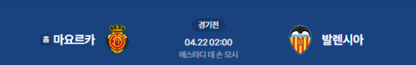 2026년 4월 22일(수) 오전 02:00(KST) 라리가(La Liga) 33라운드: RCD 마요르카 vs 발렌시아 CF