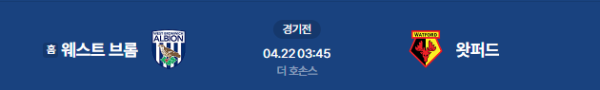 2026년 4월 22일(수) 오전 03:45(KST) 잉글랜드 챔피언십 44라운드: 웨스트 브로미치 앨비언(WBA) vs 왓퍼드 FC