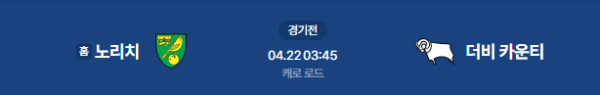 2026년 4월 22일(수) 오전 03:45(KST) 잉글랜드 챔피언십 44라운드: 노리치 시티 vs 더비 카운티