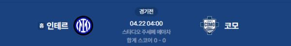 2026년 4월 22일(수) 오전 04:00(KST) 코파 이탈리아(Coppa Italia) 준결승 2차전: 인테르 vs 코모 1907