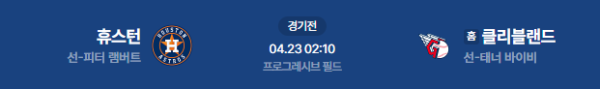2026년 4월 23일(목) 오전 02:10(KST) 메이저리그(MLB) 정규시즌: 휴스턴 애스트로스 vs 클리블랜드 가디언스