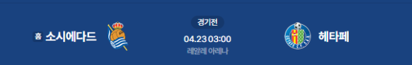 2026년 4월 23일(목) 오전 03:00(KST) 스페인 라리가: 레알 소시에다드 vs 헤타페 CF