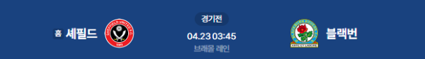 2026년 4월 23일(목) 오전 03:45 (KST) 잉글랜드 챔피언십: 셰필드 유나이티드 vs 블랙번 로버스