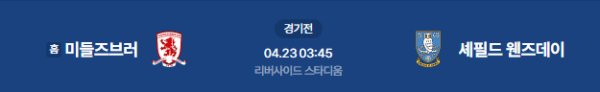 2026년 4월 23일(목) 오전 03:45(KST) 잉글랜드 챔피언십: 미들즈브러 vs 셰필드 웬즈데이