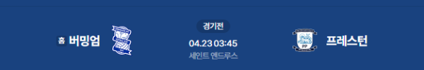 2026년 4월 23일(목) 오전 03:45(KST) 잉글랜드 챔피언십: 버밍엄 시티 vs 프레스턴 노스 엔드