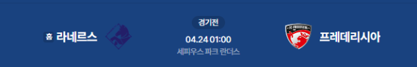 2026년 4월 24일(금) 오전 01:00 (KST) 덴마크 수페르리가 강등 라운드: 라네르스 FC vs FC 프레데리시아