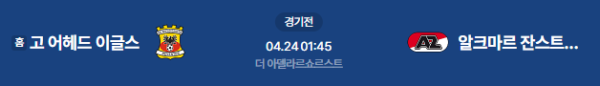 2026년 4월 24일(금) 오전 01:45 (KST) 네덜란드 에레디비시: 고 어헤드 이글스 vs AZ 알크마르
