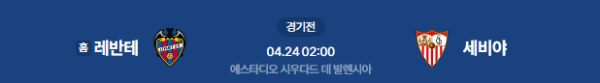 2026년 4월 24일(금) 오전 02:00(KST) 스페인 라리가 33라운드: 레반테 UD vs 세비야 FC