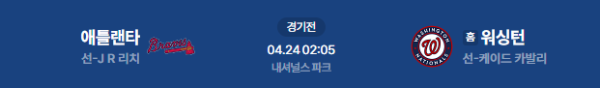 2026년 4월 24일(금) 오전 02:05 (KST) 메이저리그(MLB): 애틀랜타 브레이브스 vs 워싱턴 내셔널스