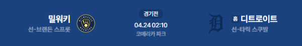 2026년 4월 24일(금) 오전 02:10 (KST) 메이저리그(MLB): 밀워키 브루어스 vs 디트로이트 타이거즈