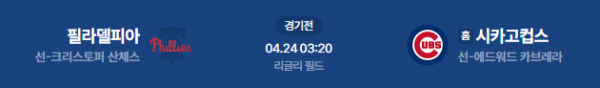 2026년 4월 24일(금) 오전 03:20 (KST) 메이저리그(MLB): 필라델피아 필리스 vs 시카고 컵스